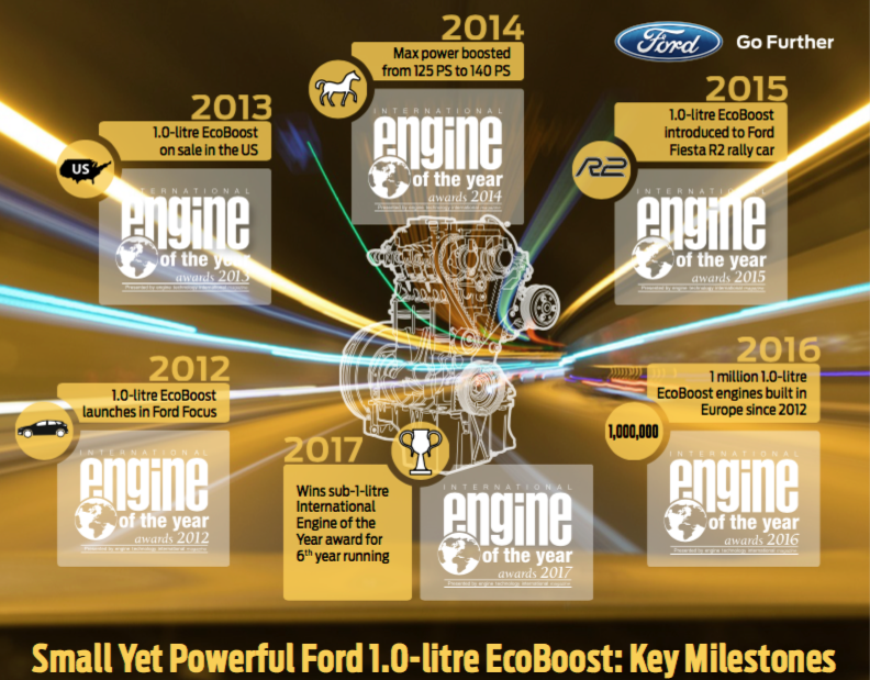 “Our 1.0-litre EcoBoost engine has been a game-changer, setting the benchmark for compact, fuel-efficient engines with sophisticated EcoBoost turbocharging, direct fuel injection and Twin-Independent Variable Camshaft Timing technologies,” said Joe Bakaj, vice president, Product Development, Ford of Europe. “Even with 10 International Engine of the Year awards under our belt, we’re still finding ways to push back the boundaries of powertrain engineering, and deliver even more benefit to our customers from this acclaimed small engine.”