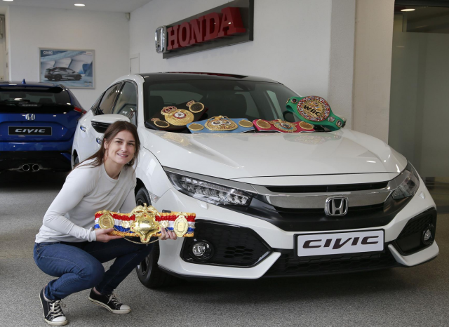 Director of Sales and Marketing for Universal Honda Ltd. John Saunders remarked “We are absolutely delighted to continue our relationship with Katie as a Honda Ambassador. She is one of Irelands most successful athletes ever and with a record-breaking amateur career behind her, including Olympic GOLD and of course recently unifying all belts, she continues her dominance in the professional world. Universal Honda wish her safe and happy motoring in her new Civic and I look forward to seeing continued success in her boxing career”.