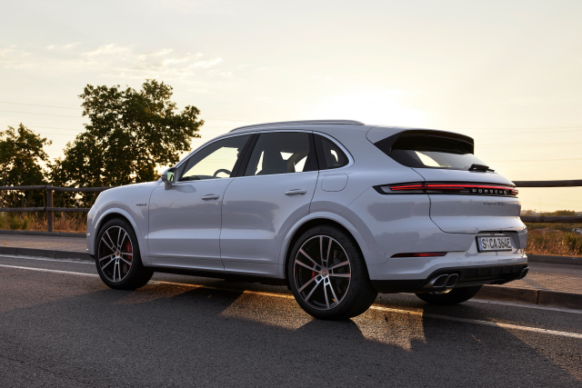 The suspension combines confident handling in dynamic cornering with comfort-focused characteristics in slow driving situations and maximum suppression of pitch and roll. Porsche Torque Vectoring Plus (PTV Plus) is also standard in the Cayenne Turbo E-Hybrid. Porsche Dynamic Chassis Control (PDCC) and rear-axle steering are available as options.