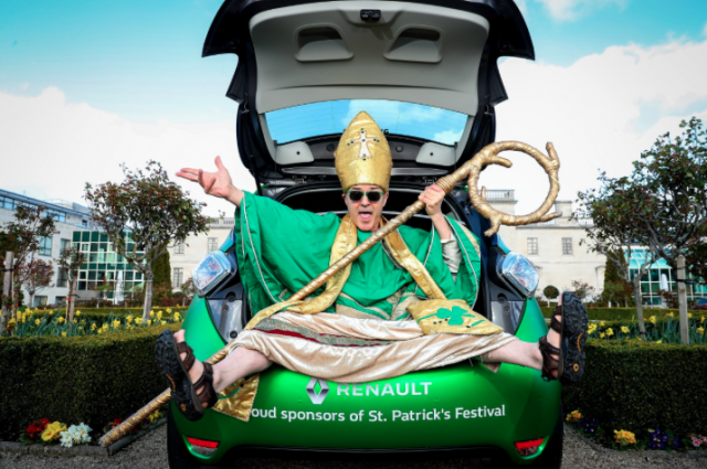 St. Patrick himself took a break from the upcoming yearly celebrations to announce Renault Ireland as the official car partner of the National St. Patrick’s Festival 2019. This year’s festival will run from Thursday 14th to Monday 18th March, with over 500,000 expected to line the streets of Dublin for the Festival Parade on Sunday March 17th. Renault announced in 2018 it will be the official car partner of the St Patrick’s Festival for three years. As part of its involvement, Renault will show you don’t have to be a saint to go green as the 100% electric Renault ZOE makes its way through the capital during the lively and much-anticipated parade. The popular Renault KADJAR SUV will also feature in the parade.
