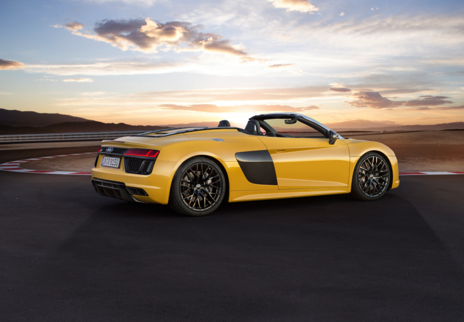 The new Audi R8 Spyder V10 has just lost its top. Audi has chose the New York International Auto Show 2016 to unveil this beauty and already orders are flooding in. Powering the Spyder is the same naturally aspirated 5.2-litre engine which can be optionally fitted with the sport exhaust system with gloss black tailpipe trims. With 540 hp of power and 540 Nm of torque at 6,500 rpm the Spyder has phenomenal road performance: from 0 to 100 km/h in 3.6 seconds, and a top speed of 318 km/h. For efficiency Audi have fitted the new freewheeling mode, where the R8 coasts with the engine decoupled, helping fuel efficiency by ten percent compared with the old V10 model. The new R8 Spyder consumes 11.7 litres per 100 kilometres, which results in 277 grams CO2 per kilometre. Behind the V10, there is a super fast seven-speed S Tronic which the driver controls electronically. The dual-clutch transmission pushes power to a newly designed quattro drive system with an electro-hydraulically activated multi-plate clutch at the front axle.