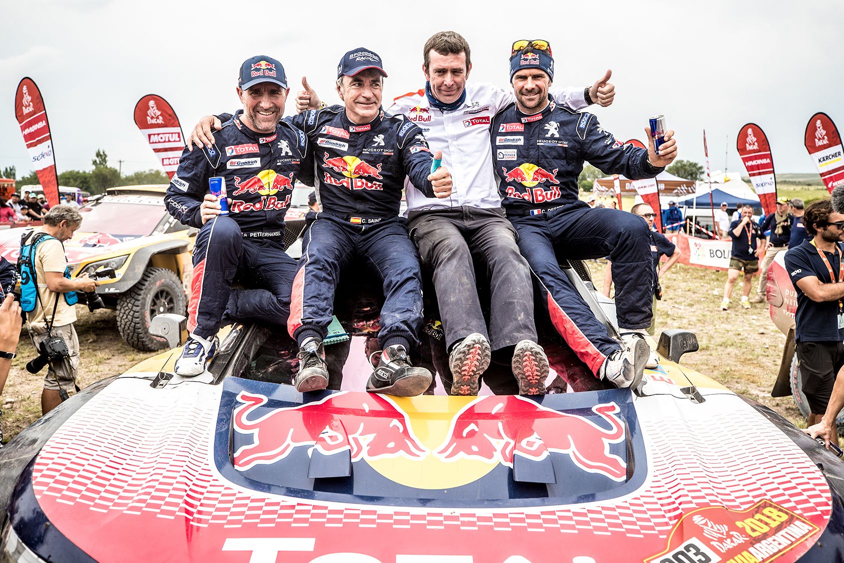 “El Matador” Carlos Sainz and co-driver, Lucas Cruz brought their n°303 Peugeot 3008DKR Maxi to a magnificent victory at the 40th Dakar Rally this weekend, with a 43 minute 40 second advantage over the nearest rivals. The third consecutive win for Team Peugeot Total, on the most demanding rally in the world, came only after battling 8,793km of dunes, mountain passes and rocky tracks through Peru, Bolivia and Argentina. Peugeot won seven out of 13 stages outright at the hands of the ultimate Dream Team of Carlos Sainz and Lucas Cruz, Stéphane Peterhansel and Jean-Paul Cottret, Cyril Despres and David Castera and Sébastien Loeb and Daniel Elena. This year’s win takes Peugeot’s already impressive track record of success at the Dakar to new heights, being the manufacturer’s seventh win from eight races since 1987.